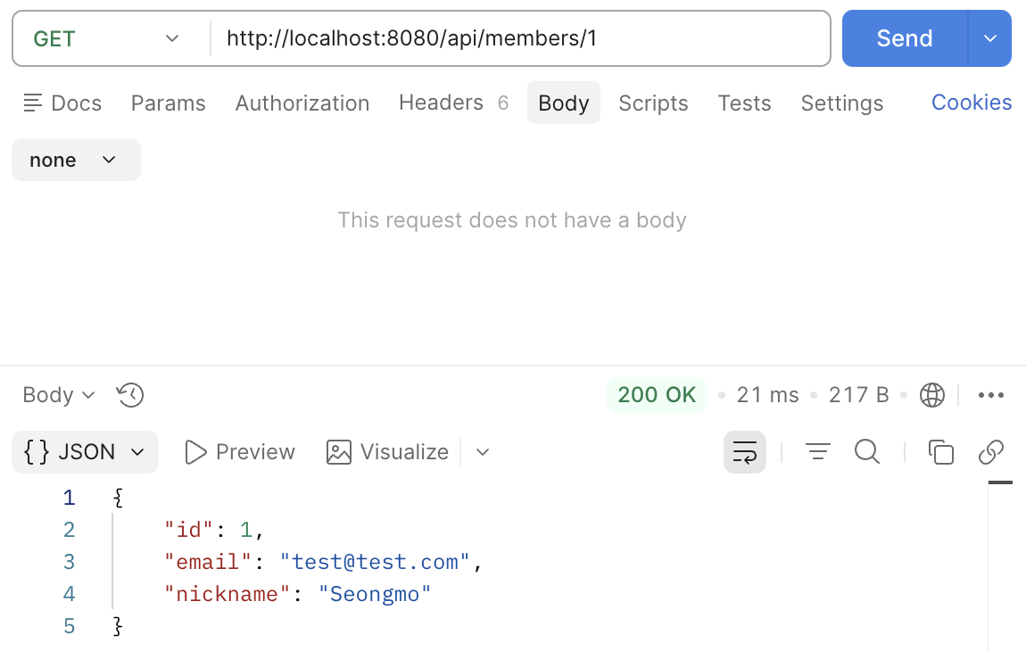 @RequestMapping("/api/members") 는 이 컨트롤러의 모든 API 앞에 /api/members 가 붙는다는 의미이다.