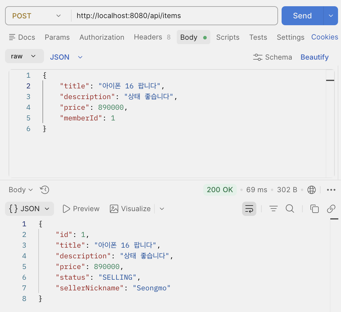 Postman으로 상품 등록 요청을 해보자.